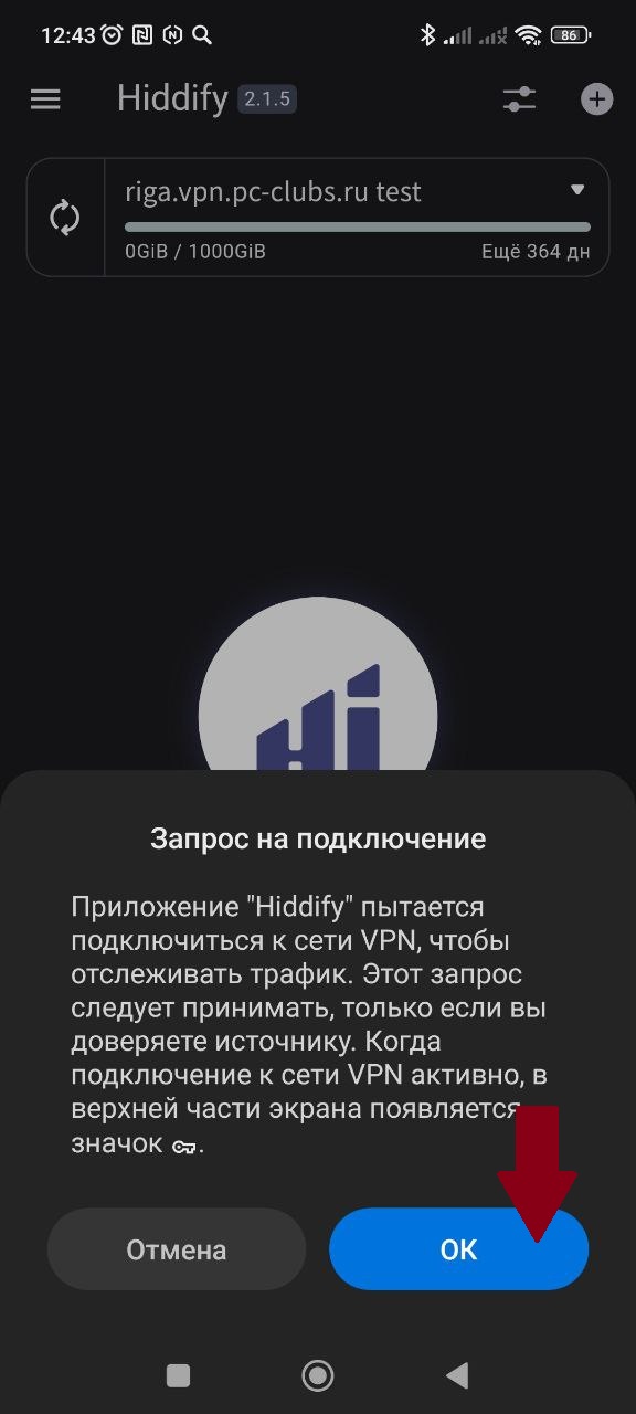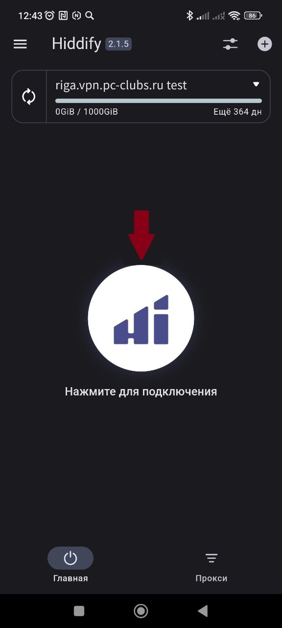 - Нажимаем центральную кнопку для включения/выключения VPN