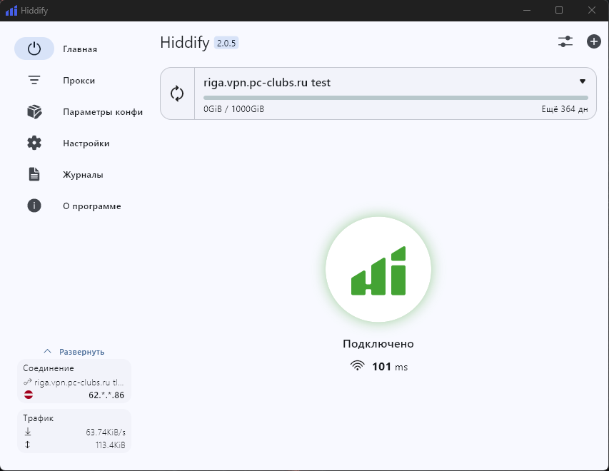 - Прокси - Hiddify подключается к серверу VPN и запускает локальный прокси сервер. Вам нужно вручную настроить нужные программы для работы через прокси (хост - 127.0.0.1, порт 12334).